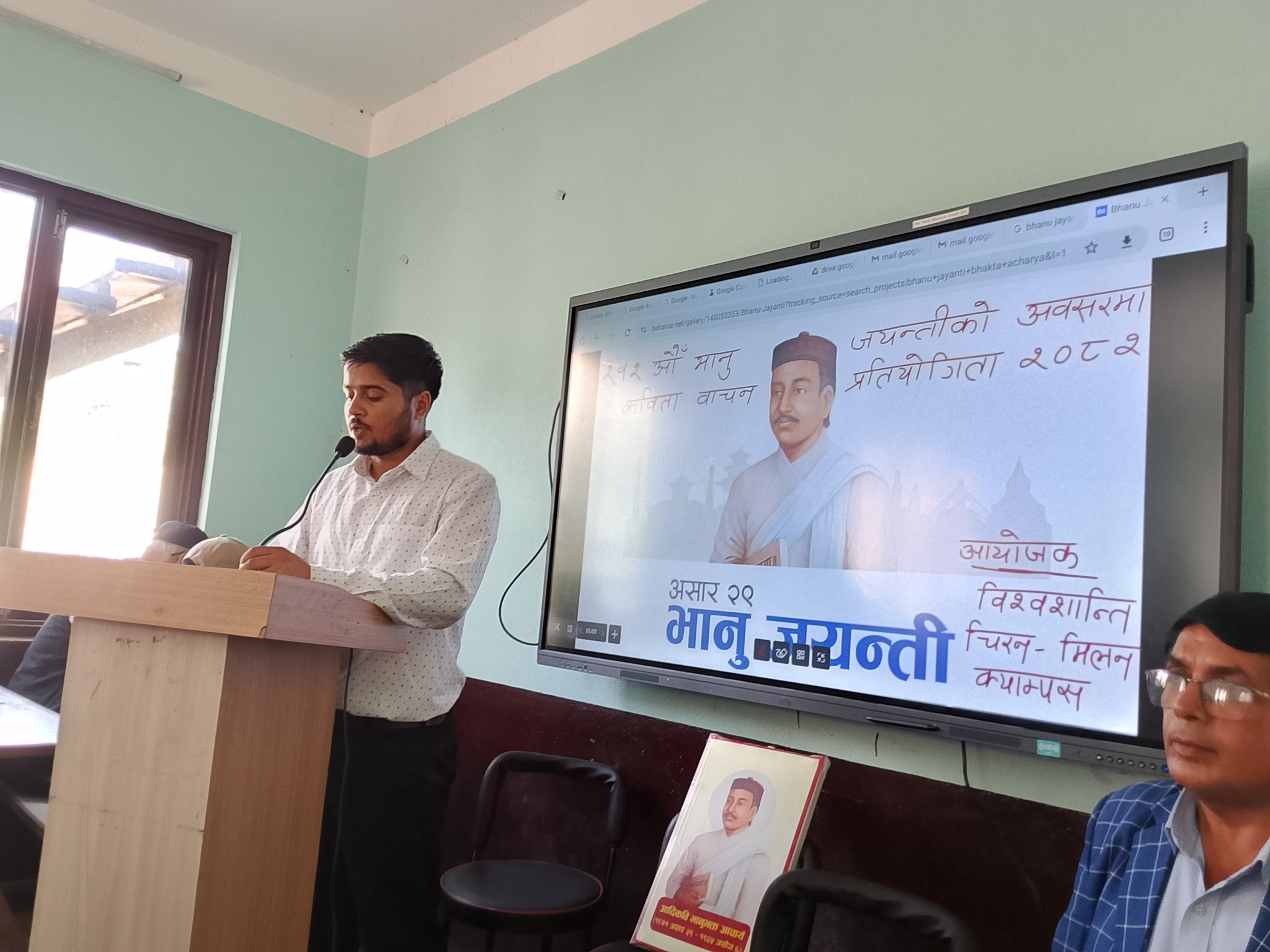 विश्वशान्ति चिरन मिलन क्याम्पसले २१२औँ भानुजयन्तीको अवसरमा आयोजित कविता प्रतियोगिता सम्पन्न २०८२